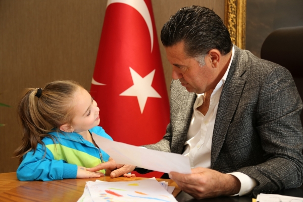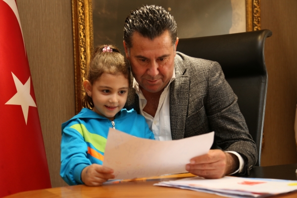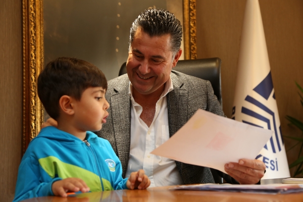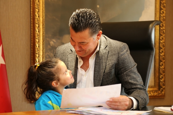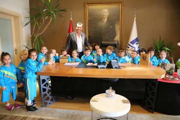 Anaokulu öğrencileri, Bodrum Belediye Başkanı Mehmet Kocadon’u makamında ziyaret etti.