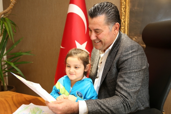 Ziyaret sonunda ise öğrenciler, yapmış oldukları “Mehmet Kocadon” temalı resimlerini Başkan’a hediye etti.