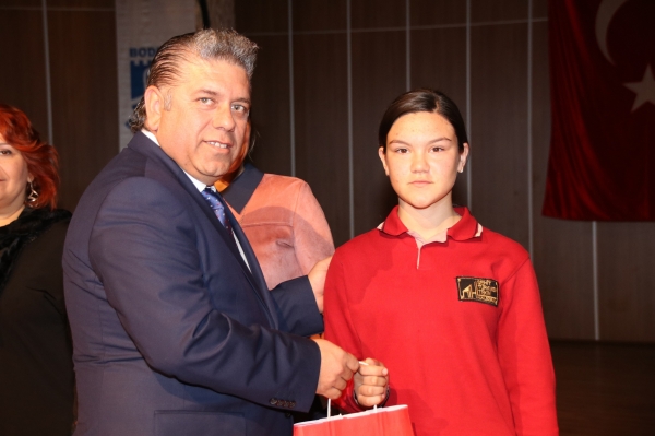Yapılan diğer konuşmalardan sonra adaylık eğitimini tamamlayan öğretmenler yemin etti. Yeminin ardından yıl içinde emekli olan öğretmenlere hizmet şeref belgeleri ile Bodrum İlçe Milli Eğitim Müdürlüğünce hazırlanan “Kitap Ayracı Tasarım Yarışması”nda dereceye giren öğrencilere ödülleri Bodrum Kaymakamı Bekir Yılmaz, Bodrum Belediye Başkan Yardımcısı Taner Uslu ve Bodrum İlçe Milli Eğitim Müdürü Emin Geçin tarafından verildi.