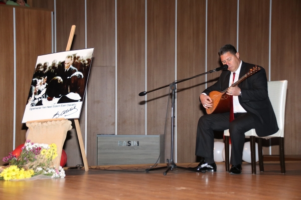 Törende bir konuşma yapan Bodrum İlçe Milli Eğitim Müdürü Emin Geçin ''24 Kasım Öğretmenler Günü münasebetiyle toplanmış bulunmaktayız. Başta Gazi Mustafa Kemal Atatürk olmak üzere görevlerinin başında fedakarca, sabırla, özveriyle çalışırken şehit düşen bütün öğretmenlerimizi rahmet, minnet ve şükranla yâd ediyorum. Değerli misafirler; ülkelerin ve toplumların en önemli gücü, en büyük zenginliği iyi yetişmiş, çalışkan, nitelikli insan kaynağıdır. Öğretmenlerimiz bu nitelikli insanları yetiştiren, geliştiren, çoğaltan kısacası geleceğimizi inşa eden insanlardır. 25 bin 300 öğrencimizle şunun farkındayız; galip devletlerle mağlup devletler arasındaki tek fark bir avuç yetişmiş insandır. İşte öğretmenlerimiz bu bir avuç insanı yetiştirmek için köylerde kentlerde tabiatın her türlü olumsuzluğuna göğüs gererek fedakarca çalışmaktadırlar. Azimle ve şevkle ülkemizin ihtiyaç duyduğu o bir avuç yetişmiş insanı inşa etmek için tohum eken, bazen ürünü alan, bazen alamayan, kıt imkanlarla hiç şikayet etmeden çalışan bütün öğretmenlerimizi sevgi ve saygıyla selamlıyorum.'' dedi.