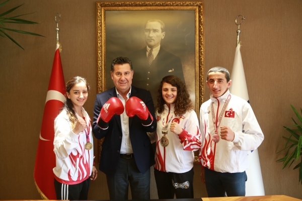 ŞAMPİYON SPORCULARDAN BAŞKAN KOCADON’A ZİYARETİ