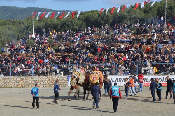 Ege, Akdeniz ve Marmara bölgelerinden yaklaşık 160 devenin yer aldığı etkinlikte Bodrum Belediye Başkanı Mehmet Kocadon’un devesi “Goca Bodrumlu” da mücadele etti.