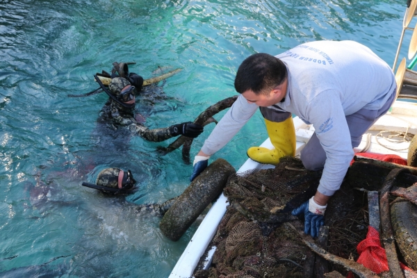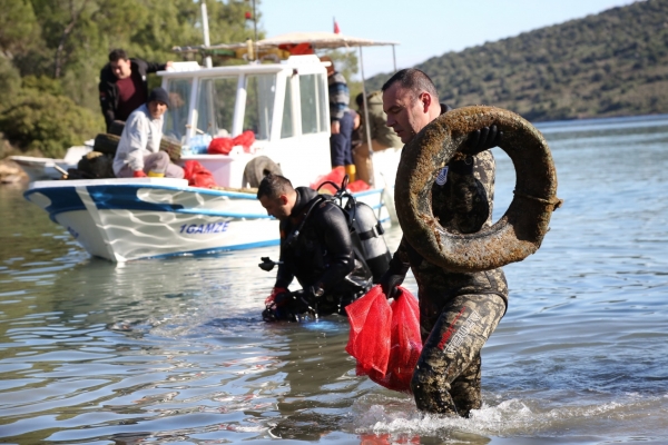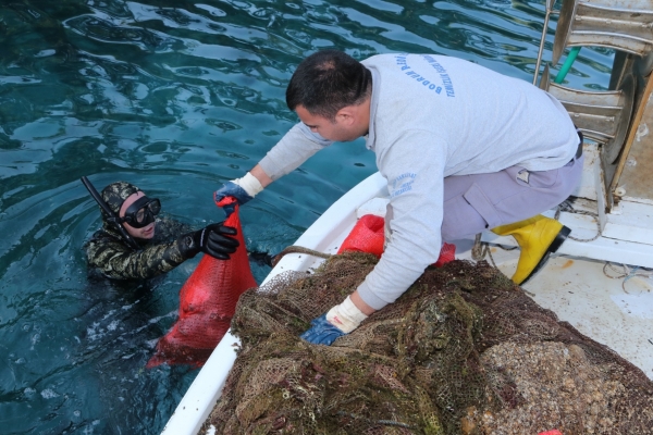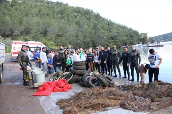 Koyda, deniz dibi temizliğine katılan Bodrum Belediyesi Dalış Ekibinde görevli dalgıçlar, 1,5 saat süren temizlik çalışmaları sırasında çok sayıda atığı su yüzeyine çıkardı. Lastik ve balıkçıların kullandığı balık ağı ağırlıklı olmak üzere deniz dibinden 127 kilogram cam şişe, 148 kilogram plastik malzeme, 40 kilogram alüminyum malzeme ve yaklaşık 200 metre uzunluğunda balıkçı ağından oluşan 1 tona yakın atık topladı. Atıklar, kıyıdaki ayrıştırma işleminin ardından Bodrum Belediyesi 1. Sınıf Atık Getirme Merkezi’ne nakledildi.