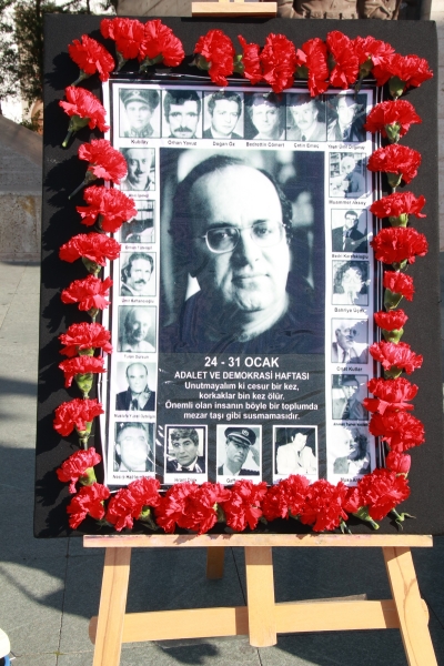 Törenin sonunda ise Uğur Mumcu'nun fotoğrafının altına karanfiller bırakıldı.