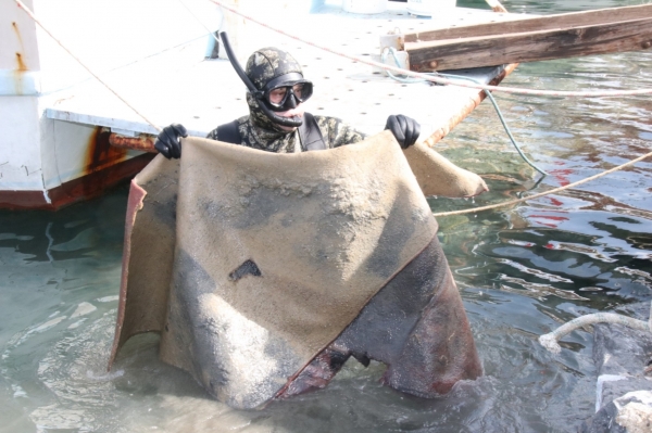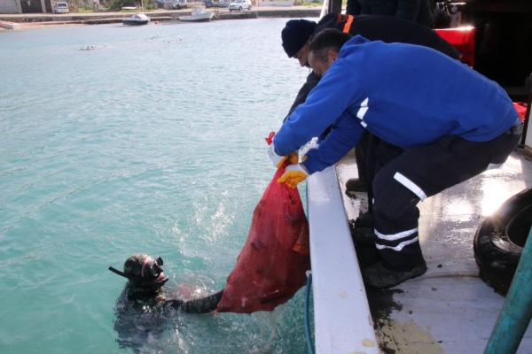 Yaklaşık 2 saat süren deniz dibi temizliği sırasında denizden 107 kg cam, 92 kg plastik, 216 kg araç lastiği, 42 kg teneke alüminyum, 37 kg tekstil atığı ve 3 kg da demir gibi çok sayıda atık madde çıkarıldı. Toplam 497 kg atığın çıkarıldığı temizlik çalışmaları sonrası atıklar ayrıştırma işlemlerinin ardından kamyona yüklenerek geri dönüşüm için Bodrum Belediyesi 1. Sınıf Atık Getirme Merkezi’ne nakledildi.