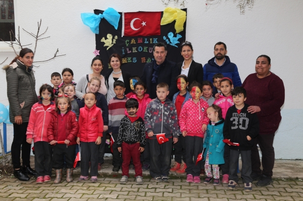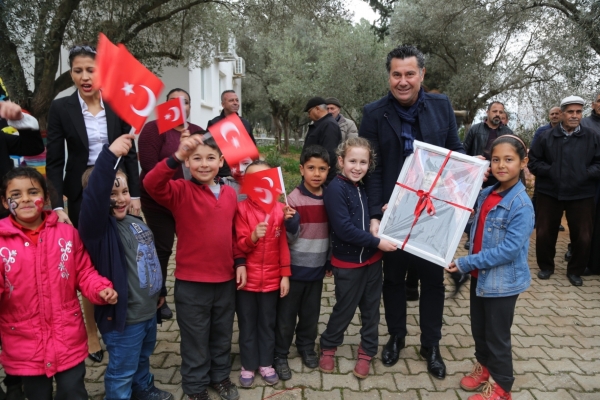 Çamlık İlkokul Müdürü Sevilay Yılmaztürk ve Okul Aile Birliği üyeleri, okullarına verdiği destekler nedeniyle Başkan Mehmet Kocadon'a teşekkür etti. Başkan Kocadon "Yarımadadaki tüm okullara imkanlar dahilinde yardım etmeye çalışıyoruz. Öğrencilerimizden çeşitli isteklerin yer aldığı mektuplar almıştım. Onların isteklerini yerine getirmek benim için en büyük mutluluk." dedi.