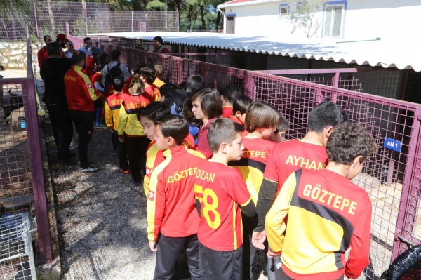 Bodrum Göztepe Futbol Okulu’nun yetkilileri ile ailelerinin de eşlik ettiği 50 minik sporcu, Bodrum Belediyesi Geçici Hayvan Bakımevini ziyaret ederek hayvan dostlarıyla buluştu.