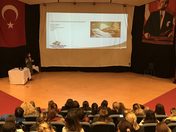 Bodrum Belediyesi ile Özel Bodrum Hastanesi işbirliğinde Bodrum Belediyesi Nurol Kültür Merkezi'nde gerçekleşen seminerde ve Uzman Dr. Sevda Berberoğlu tarafından "Çalışan Ebeveynlerin Çocuk Sağlığında Dikkat Etmesi Gerekenler" konuları aktarıldı. Seminerde çocukların gelişmesinde çok önemli bir dönem olan 0-10 yaş grubunda özellikle kış aylarında yaşanabilecek hastalıklar, alınacak ön tedbirler ve tedavi hakkında bilgiler veren Dr. Sevda Berberoğlu, hastalanmış çocuğuyla ilgilenmek zorunda kalan çalışan ebeveynlerin bu gibi durumlarda çocuklarına ihtiyaç duydukları bakımı sağlarken dikkat etmeleri gereken konuların, püf noktalarını ve bazı pratik bilgiler aktardı.