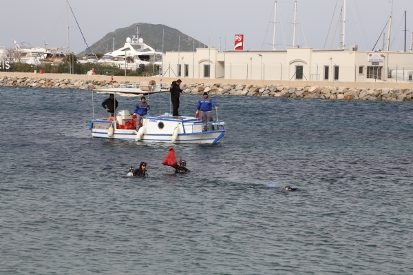 Bodrum Belediyesi’nin 4 yıl önce başlattığı deniz dibi temizlik çalışmaları kapsamında Bodrum Belediyesi Dalış Ekibi, 2018 yaz sezonu öncesi Bodrum genelinde belirlenen noktalarda deniz dibi temizliği yapıyor. Bu yıl 10 Ocak’ta Yalıkavak Küdür Halk Plajı'ndan başlatılan ve her hafta hava koşulları müsait olduğu takdirde farklı bir koyda sürdürülen çalışmalarda dalgıçlar en son Turgutreis sahilini temizledi.