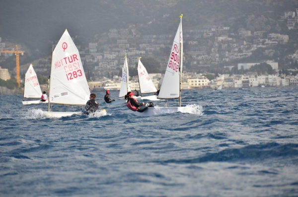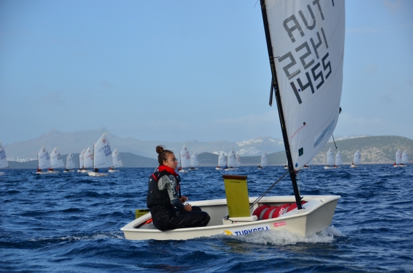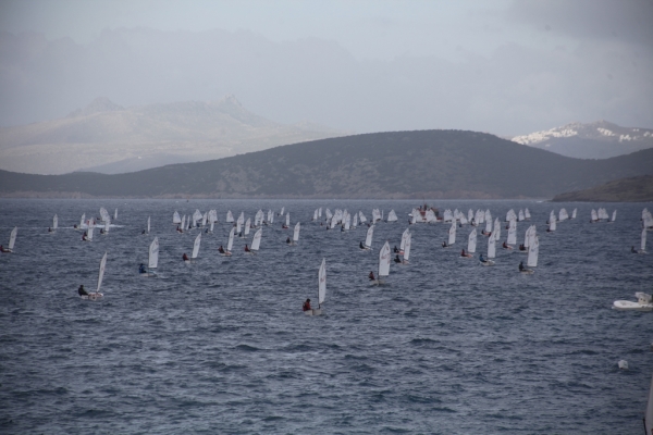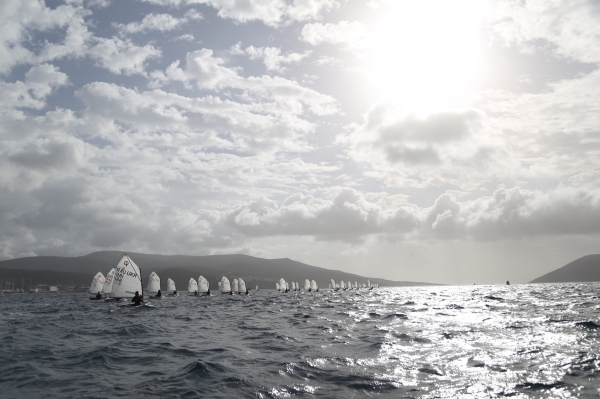 8 Mart Perşembe günü Bodrum’un İçmeler Mevkii’nde yer alan Bodrum Belediyesi Bodrumspor Kulübü İçmeler Yelken Kulübü’nde sabah saatlerinde bir araya gelen optimistçiler, startın verilmesiyle İçmeler açıklarında kurulan parkurda yarış heyecanını başlattı. İlk gün yarışlarında 12-15 knot güneyden güçlü esen rüzgarda kıyasıya bir mücadele sergiledi. Zaman zaman rüzgarın şiddetiyle zorlu anlar yaşayan optimistçiler, yarış sonuna kadar mücadeleyi elden bırakmadı.