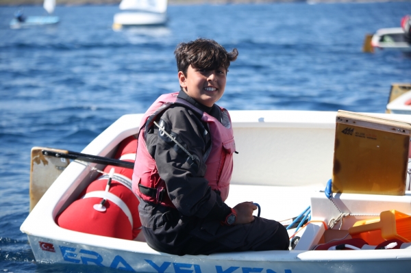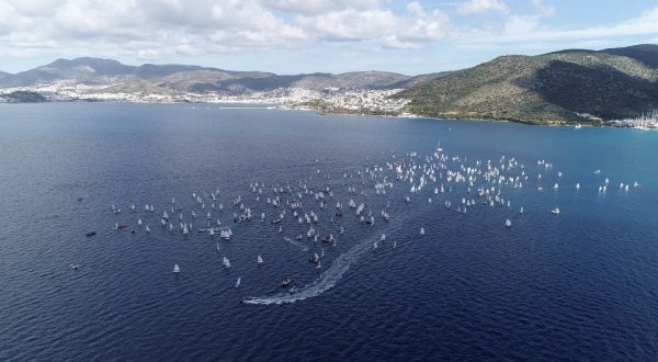 Bu yıl 6’ncı kez düzenlenen Bodrum International Optimist Regatta’da son gün yarışları; yetersiz ve sürekli yön değiştiren rüzgarın olması nedeniyle yapılamadı. Rüzgar bekleyen minik sporcular da bu sefer, denizin ortasında hakem teknesinin etrafına toplanarak renkli görüntüler oluşturdu.