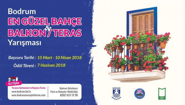 Bodrum Belediyesi'nin destekleri ile Bodrum Çevre Platformu ve Bodrum Peyzaj Mimarları Odası tarafından düzenlenen “Bodrum En Güzel Bahçe & Balkon/Teras Yarışması” için başvurular 15 Mart 2018 Perşembe gününden itibaren alınmaya başlanacak.