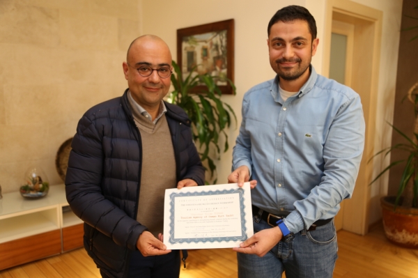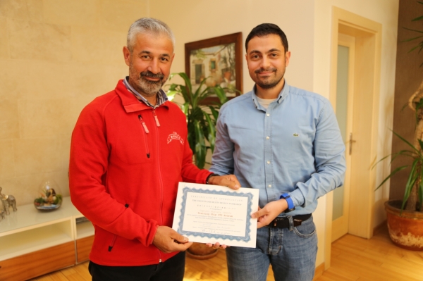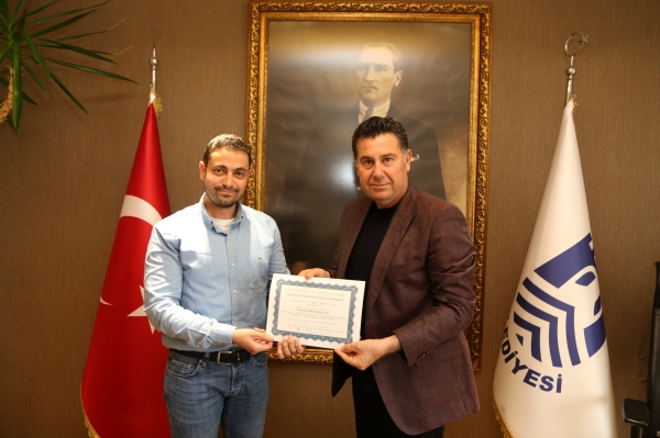Japon Shizouka Kültür ve Sanat Üniversitesi Endüstriyel Tasarım Bölümü tarafından hazırlanan teşekkür belgelerini Bodrum Belediye Başkanı Mehmet Kocadon'u makamında ziyaret eden Türk - Japon Tasarım Çalıştay Koordinatörü Bülent Turan takdim etti.