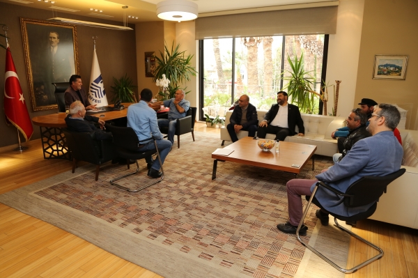 Türk - Japon Tasarım Çalıştay Koordinatörü Bülent Turan'ın Başkan Mehmet Kocadon'a yaptığı ziyarete, Bodrum Ticaret Odası Başkanı Mahmut Kocadon, Deniz Ticaret Odası Bodrum Şube Başkanı Gündüz Nalbantoğlu başta olmak üzere organizasyona destek veren firma yetkilileri de eşlik etti.