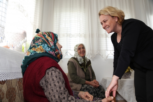 Bodrum Belediyesi Basın Yayın ve Halkla İlişkiler Müdürü Ummahan Yurt, ekibiyle birlikte yaptıkları ziyaretler kapsamında en son Akyarlar Mahallesi Kemer Mevkii’nde kızı ile yaşayan 102 yaşındaki Mensure Acar’a ziyarette bulundu. Gülen yüzlerle yaklaşan Bodrum Belediyesi ekibini karşısında görünce gözleri dolan Mensure Acar, “Siz gelmeden önce biraz başım ağrıyordu, şimdi geçti. Ne güzelsiniz, sevgi dolu, ışıl ışıl… Beni bu yıl da unutmayıp halimi hatırımı sordunuz ya. Sağ olun var olun” dedi.