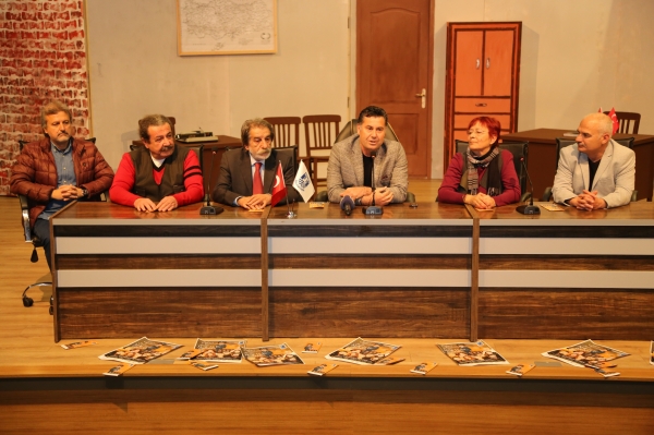 Toplantının açılış konuşmasını yapan Hüseyin Akşen “Bodrum'un sanat severleri ve Bodrum'un aydınlık yüzlü insanları ve değerli basın mensupları. Bugün Bodrum'da sanat adına tarih yazılıyor ve bugün sanatçılar olarak biz çok mutluyuz, gururluyuz. Çünkü Bodrum'da artık Bodrum Belediyesi Şehir Tiyatrosu kurumsal kimliği ile faaliyet gösteriyor. 27 Mart Dünya Tiyatrolar Günü'nde ilk oyununu sanatsever Bodrum halkına sunacak. Biz çok heyecanlıyız ve aylardır çalışıyoruz bunun için. Çok kısa sürede bir tiyatronun kurulması, kadrosunun faaliyete geçmesi, oyunun seçilmesi, provalar başlaması ve oyunu sergileniyor olması, gerçekten ancak sanatçının hayal edip yapabileceği bir şey. Bu çok zor ama çok heyecanlı, çok gurur verici bir şey. Bunun için bu tarihi yazarken sevgili Belediye Başkanımıza tüm sanatseverler, tüm oyuncularımız adına şükranlarımızı sunuyoruz. Gerçek, Türkiye’nin bu koşullar altında, içinde bulunduğu koşulda sanata evet demesi ve bir şehir tiyatrosu kurmak, büyük bir olay ve bu olayı başardı bence, Bodrum'un sanat tarihine altın harflerle yazılacak sevgili Başkanımız Mehmet Kocadon. Bunları söylerken bir şeyi unutmamak gerekiyor, şehir tiyatrosu kuruyorsanız Darülbedayi'yi, Türk Tiyatrosu'na altın harflerle ismini yazdırmış o değerli ustayı, Muhsin Ertuğrul'u unutmamak gerekiyor. Biz zaten bu bilinçle, bu disiplinle ondan aldığımız sanat terbiyesi ile yolumuza devam edeceğiz. Bir başka şehirde, yani olmazsa olmazı Muhsin Ertuğrul öyle taşlarla döşedi ki ve tiyatro hala ayakta. Başka olmazsa olmazımız tabii ki Mustafa Kemal Atatürk. Biz sanatta Muhsin Ertuğrul'un yolunu izleyeceğiz ama laik Türkiye Cumhuriyetimizde de Ulu Önderimizin yolundan gideceğiz. Bodrum halkına hayırlı olsun diyorum." dedi.