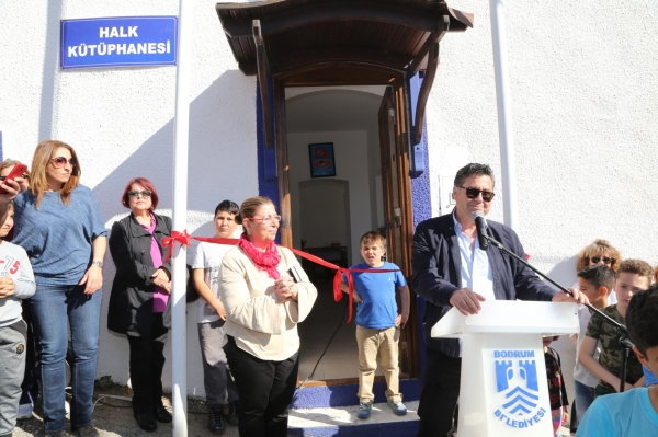 Bodrum Belediye Başkanı Mehmet Kocadon, Bodrum Kent Konseyi Gündoğan Mahalle Meclisi Kadın Çalışma Grubu tarafından yeniden hazırlanan Gündoğan Halk Kütüphanesinin açılışını yaptı.