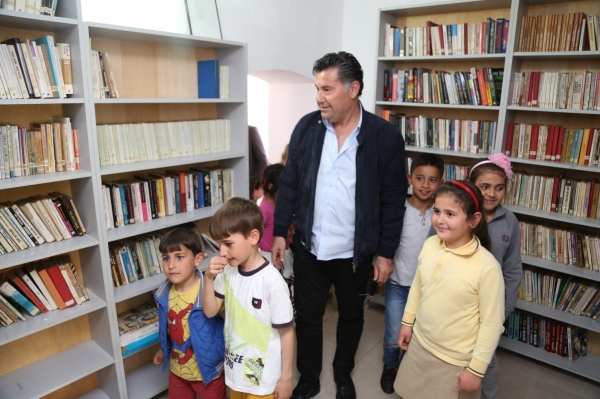 Konuşmaların ardından açılış kurdelesini kesen Başkan Kocadon, vatandaşlar ve öğrenciler ile birlikte kütüphaneyi gezdi.