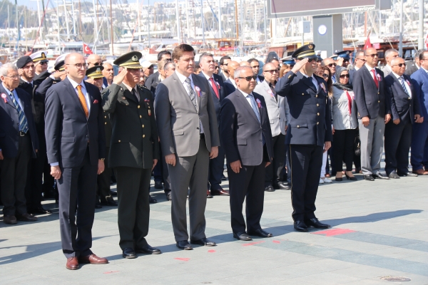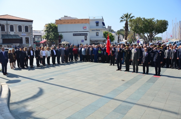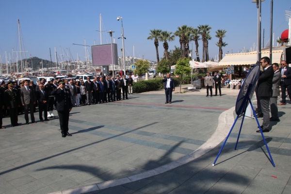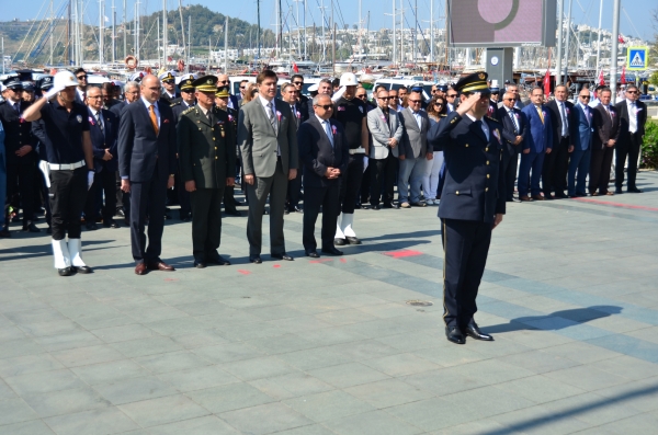 Bodrum Belediye Meydanı'nda düzenlenen törene Bodrum Kaymakamı Bekir Yılmaz, Bodrum Garnizon Komutanı Per. Alb. İzzet Adagideli, Bodrum İlçe Emniyet Müdürü Ertan Sarıkaya, Bodrum Belediye Başkan Yardımcısı Kemal Orman, Cumhuriyet Başsavcısı Dr. Barış Duman, STK. ve siyasi parti temsilcileri, Muharip Gaziler Derneği Bodrum Şubesi üyeleri ile polisler ve polis aileleri katıldı.