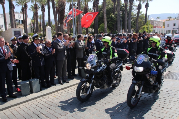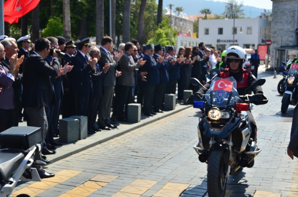 Tören, Bodrum Belediye Meydanından başlayan polis araç kortejiyle sona erdi.