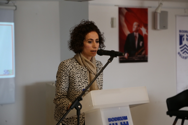 Konuşmanın ardından kürsüye davet edilen Bodrum Belediyesi Basın Yayın ve Halkla İlişkiler Müdürü Ummahan Yurt, gelen tüm misafirleri Balıkçının merhabasıyla selamladıktan sonra şunları söyledi; “Burada Bodrum Belediye Başkanı Mehmet Kocadon’u temsilen yer almaktayım. Sibel hanım, Start-in Bodrum projesi ile geldikten sonra, projenin içeriği ve Bodrum’a olacak olası katkıları bizlere heyecan verdi. Bu heyecanımızı sayın başkanımız Mehmet Kocadon ile paylaştık. Belediyemizin tüm imkanlarıyla projeye destek verdi. Sizler gibi pırıl pırıl gençleri ve genç beyinleri burada görmekten, sizleri Bodrum’da ağırlamaktan çok mutluyuz. Burada ortaya çıkacak ve olgunlaşacak fikirleriniz bizler için ilham olacaktır.” dedi.