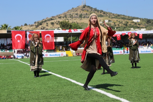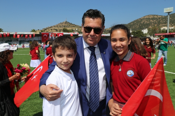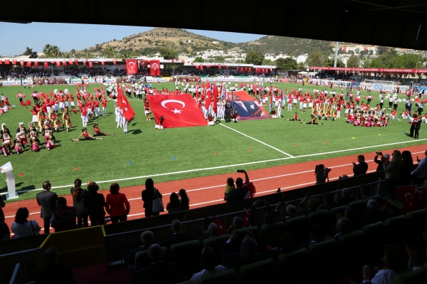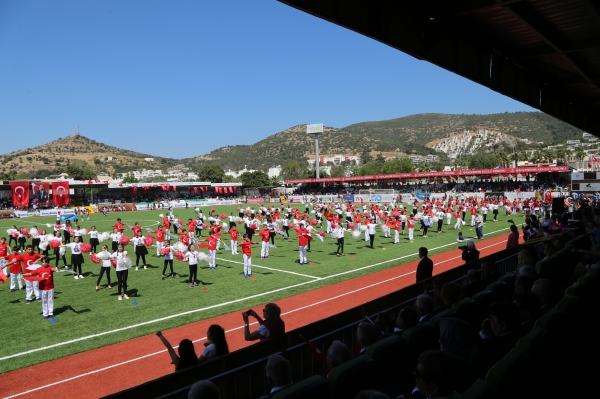 Atatürk Anıtına çelenk sunma töreni ile başlayan 23 Nisan Ulusal Egemenlik ve Çocuk Bayramı kutlamaları, Bodrum Şehir Stadı’nda öğrenciler tarafından sergilenen çeşitli gösterilerle devam etti.