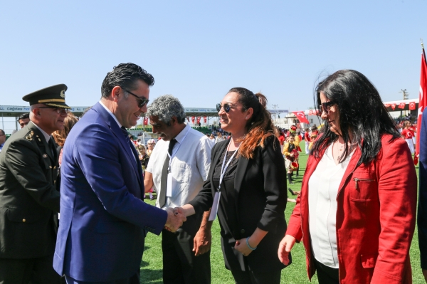 Gösterilerin bitiminde Bodrum Kaymakamı Bekir Yılmaz ve Bodrum Belediye Başkanı Mehmet Kocadon protokol üyeleriyle birlikte etkinlikte görev alan öğretmenleri kutladı.