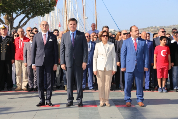 23 Nisan Ulusal Egemenlik ve Çocuk Bayramı kutlamaları sabah saatlerinde Bodrum Belediyesi önündeki Atatürk Anıtı’na çelenk sunumu ile başladı. Bodrum Belediyesi adına, Bodrum Belediye Başkan vekili Seval Aktaş’ın katıldığı programda, çelenklerin konulmasıyla birlikte 1 dakikalık saygı duruşunda bulunularak İstiklal Marşı okundu.