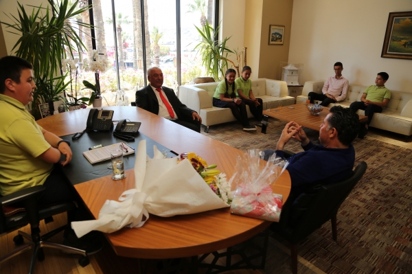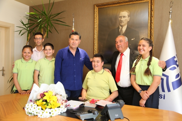23 Nisan Ulusal Egemenlik ve Çocuk Bayramı dolayısıyla, Bodrum Çiftlik Mustafa Yazıcı İlkokulu ve Ortaokulu, Bodrum Belediye Başkanı Mehmet Kocadon’u makamında ziyaret etti.