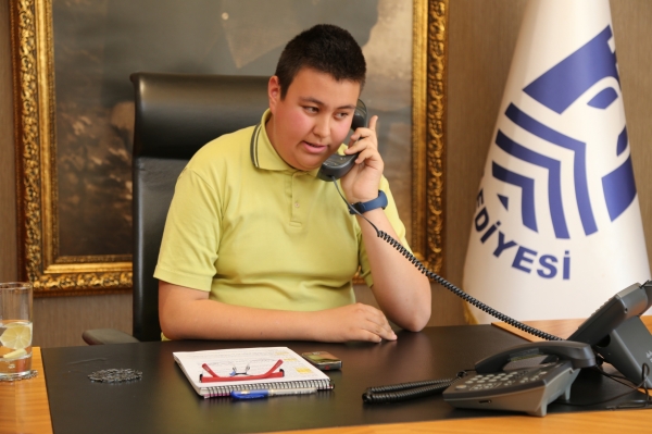 23 Nisan Ulusal Egemenlik ve Çocuk Bayramı geleneği olarak Başkanlık Makam koltuğuna oturan 8. sınıf öğrencilerinden Deniz Baş daha yeşil, daha temiz bir Bodrum için hep birlikte harekete geçmemiz gerektiğini, bunun için de herkese görevler düştüğünü dile getirdi.