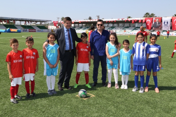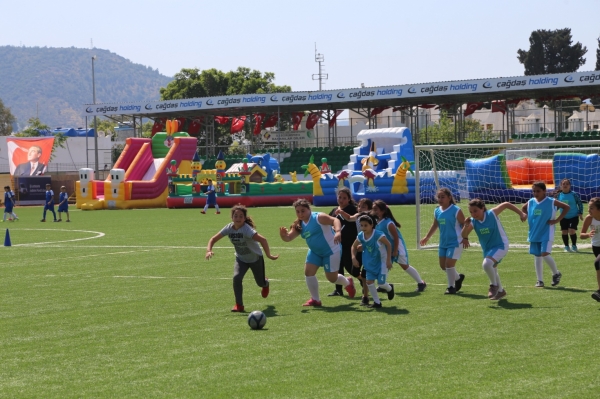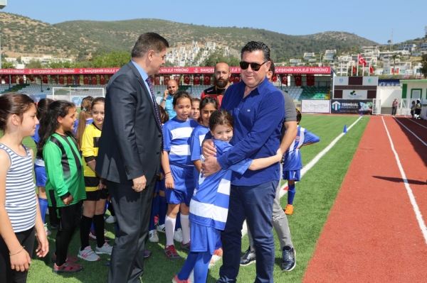Bodrum yarımadasından, 5’i kız takımı olmak üzere toplam 13 ilkokul takımının katıldığı futbol şenliğinin maç başlama vuruşunu Bodrum Kaymakamı Bekir Yılmaz ve Bodrum Belediye Başkanı Mehmet Kocadon gerçekleştirdi.