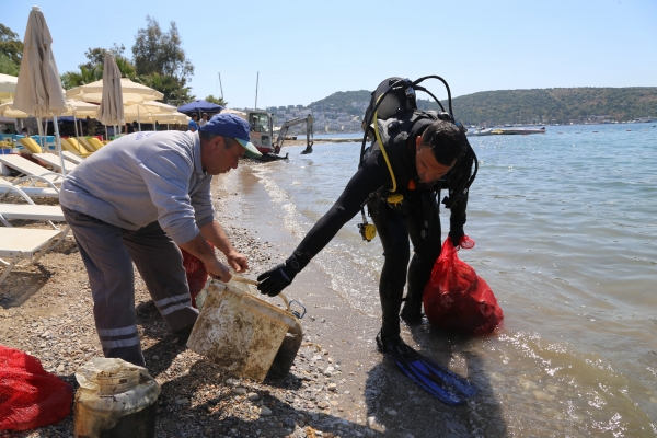 “Denize En Çok Mavi Yakışır” sloganıyla dört yıldır Bodrum yarımadasının koy ve sahillerinde sürdürülen deniz dibi temizliği bu hafta Bitez'de devam etti.