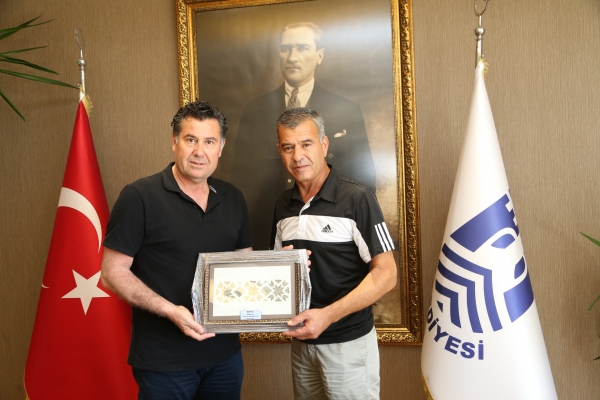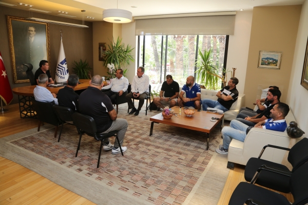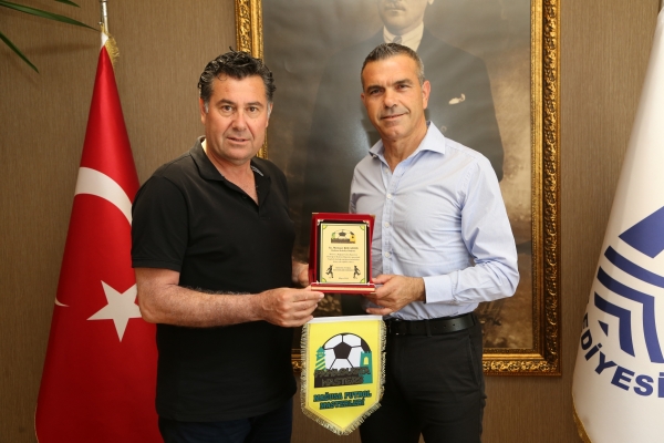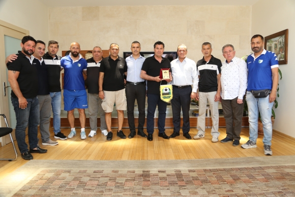 KKTC Turizm Bakanı Fikri Ataoğlu ve KKTC Meclis Başkanı Teberrüken Uluçay’ın da aralarında bulunduğu Gazimağusa Futbol Masterları Derneği üyeleri Bodrum Masterler ve Veteranlar takımı ile Bodrum Şehir Stadında yapılacak müsabaka öncesi Bodrum Belediye Başkanı Mehmet Kocadon’u makamında ziyaret etti.