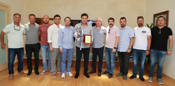 Yalıkavakspor Kulübü yöneticileri fikir alışverişinde bulunmak üzere Bodrum Belediye Başkanı Mehmet Kocadon’u makamında ziyaret etti.