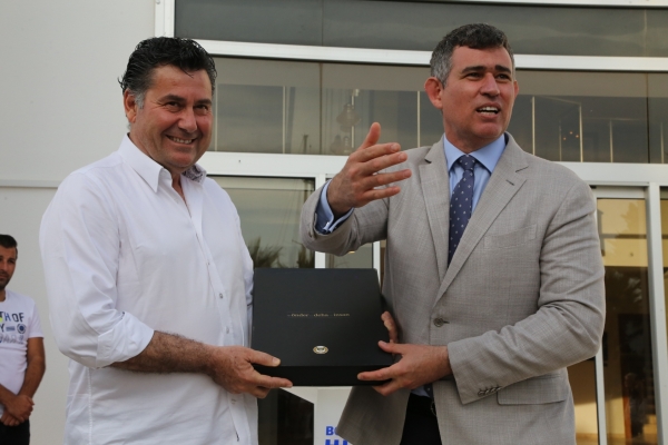 Türkiye Barolar Birliği Başkanı Metin Feyzioğlu, sergideki fotoğrafların yer aldığı kitabı Bodrum Belediye Başkanı Mehmet Kocadon'a hediye etti.
