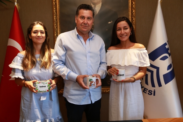 Bodrum temalı konsept ürünler tasarlamak ve üretmek için oluşturulan Haboo markasının kurucuları Gözde Özsarsılmaz ve Ege Aydoğar, Bodrum Belediye Başkanı Mehmet Kocadon’u makamında ziyaret etti.