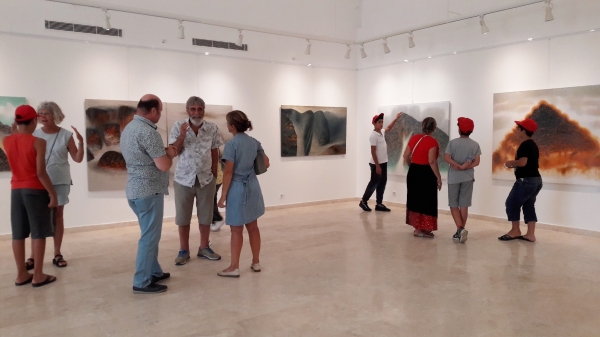 Bodrum’daki yaz kursu öğrencileri, öğretmenleri ve Bodrum Belediye Başkanı Mehmet Kocadon’un eşi Hülya Kocadon ile birlikte İbrahim-Bodil Örs çiftinin “Sınırı Aşmak” adlı sergisini ziyaret etti.