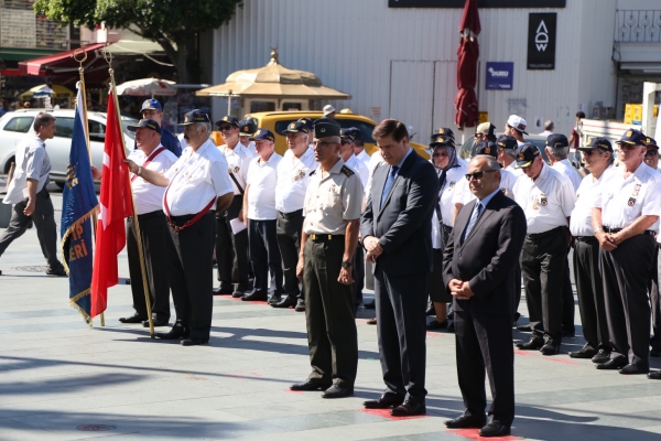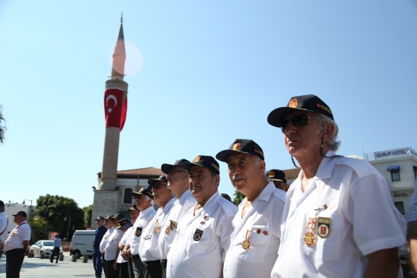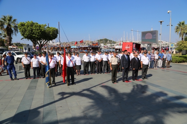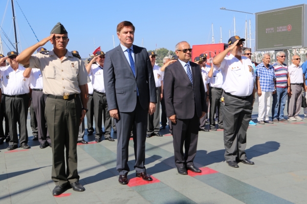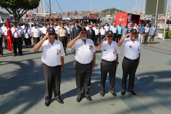 Bodrum Belediye Meydanı’nda düzenlenen törene Bodrum Kaymakamı Bekir Yılmaz, Bodrum Belediye Başkan Yardımcısı Kemal Orman ve Muharip Gaziler Derneği Bodrum Şube Başkanı Hasan Külcü, dernek üyesi gaziler ile siyasi parti temsilcileri katıldı.
