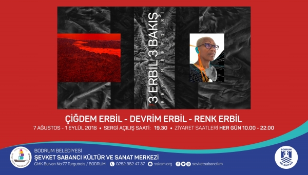 07 Ağustos 2018 salı günü 19.30'da Bodrum Belediyesi Şevket Sabancı Kültür ve Sanat Merkezi’nde açılacak olan "3 Erbil 3 Bakış" sergisi, 01 Eylül 2018 tarihine kadar her gün 10.00-22.00 saatleri arasında ziyaret edilebilir.