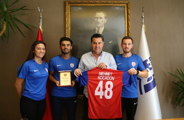 Keyifli sohbet eşliğinde geçen ziyarette sporcular, Başkan Kocadon’a, yanlarında getirdikleri, arkasında “48” ve “Mehmet Kocadon” yazılı kırmızı - lacivertli Altınordu Bodrum Futbol Okulu formasını hediye etti.