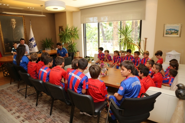Altınordu Bodrum Futbol Okulu yetkilileri ile okulun minik ve genç sporcuları, Bodrum Belediye Başkanı Mehmet Kocadon’u ziyaret etti.