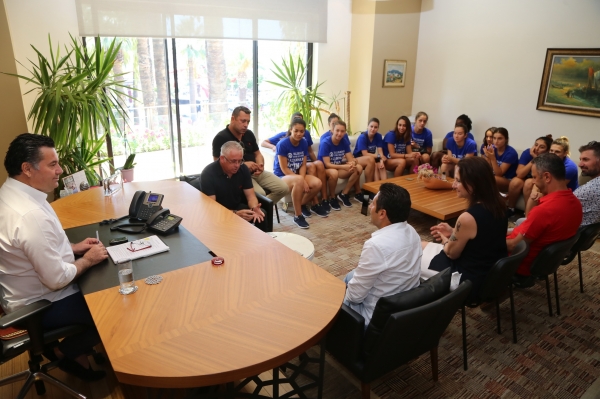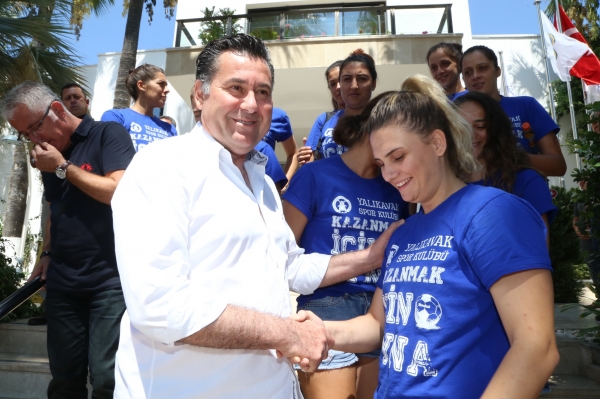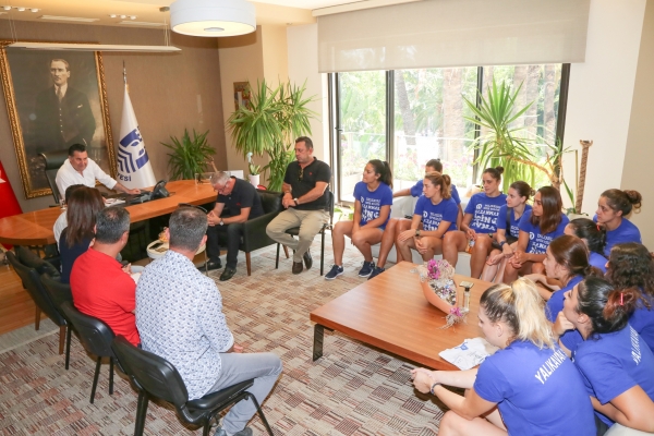 Hentbol Kadınlar Süper Ligi'ne yükselen Yalıkavak Spor Kulübü Hentbol Takımı oyuncu ve yöneticileri, Bodrum Belediye Başkanı Mehmet Kocadon'u makamında ziyaret etti.