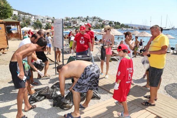 Bodrum Belediyesine ait Mavi Bayraklı plajlarda “Bodrum için 3 Dakika” sloganıyla plaj temizliği gerçekleştirildi.