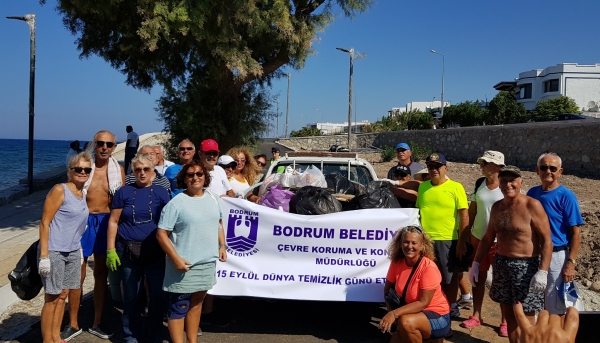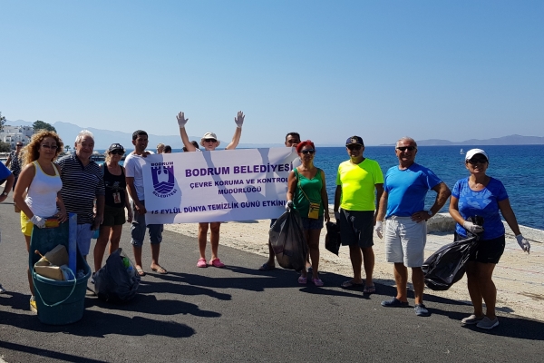 15 Eylül Dünya Temizlik Günü nedeniyle Bodrum yarımadasında yaşayan vatandaşlar çeşitli bölgelerde çöp toplayarak çevreyi temizledi. Belediye ekipleri de vatandaşlara destek verdi.