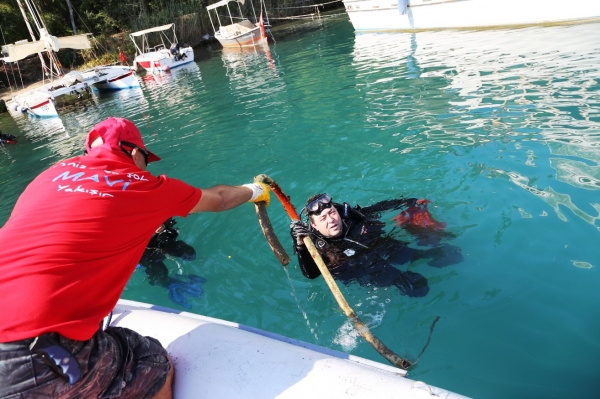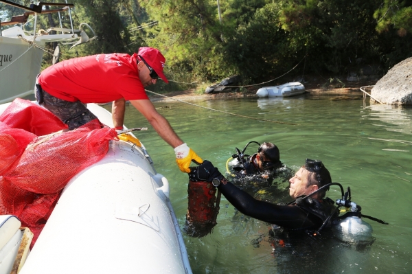 Yedi tüplü ve dört serbest dalgıçtan oluşan dalış ekibi aralarında yangın tüpü, tava, güneşlik şemsiye, halı, battaniye, balıkçı sepetleri, demir parçaları, araba ve motosiklet lastikleri, plastik içecek gibi katı atıkları denizden çıkardı. İki koyda denizden çıkarılan yaklaşık 500 kg. atık Katı Atık Toplama Teknesi "Venüs”e teslim edildi.
