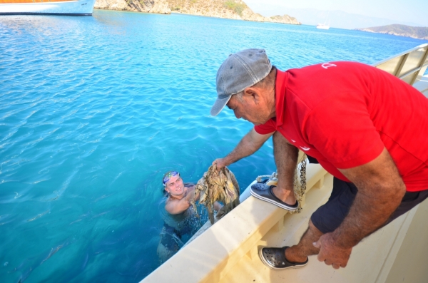 Yediadalar bölgesinde çalışmaya Bodrum ahşap guleti ile mavi yolculuğa çıkan tatilciler de eşlik etti. Türkiye'nin ve özellikle Gökova Körfezinin muhteşem bir doğal yapıya sahip olduğunu söyleyen tatilciler bu duyarlı çalışmalar için Bodrum Belediyesi ekibine teşekkür etti.