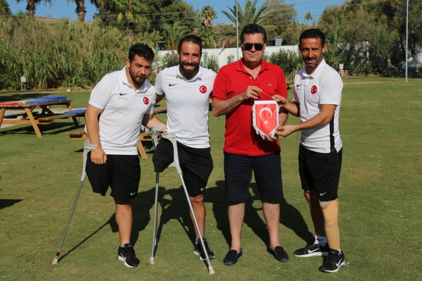 Dünya Kupası hazırlıklarını Bodrum'da sürdüren Avrupa şampiyonu Ampute Milli Takım oyuncuları ve teknik heyet, Muğla Gençlik Hizmetleri ve Spor İl Müdürü Serkan Öçalmaz ve ilçe müdürü Fatih Uzunlulu ile birlikte Bodrum Belediye Başkanı Mehmet Kocadon’u ziyaret etti.