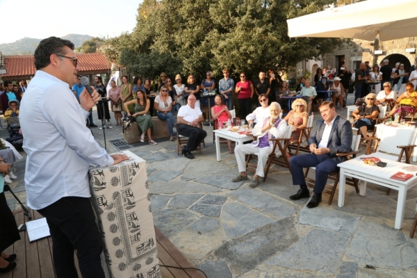 "Fakat başlattığım bu kampanya için çok az insan inanmıştı bana. Yani 5-6 kişiyi geçememiştik. Sonra o 5-6 kişiyle çok güzel okullar açmaya, vakıflar ve sevgi atölyeleri kurmaya başladık. Şimdi gerçekten o gün inanarak yola çıkan arkadaşlarımızla görüyoruz ki, eğitime büyük katkı veren bu okullarımız sayesinde, o gün adını söyleyemeyen, yazı yazamayan, konuşamayan çocuklarımız artık minibüslere tek başına biniyor, spor müsabakalarını izlemeye geliyor, bugün bu eserleri bizlere kazandırıyor, tüketen değil üreten bir insan olarak hayatlarına devam ediyorlar. Bu da beni son derece mutlu ediyor. İşte bu mutluluğumuzu, bu güzelliklere destek veren siz medeni ve aydınlık yüzlü insanlarla paylaşmak gerçekten Türkiye’ye örnek olacak bir davranış. Bize hiçbir zaman desteğinizi esirgemediniz, hep yanımızda oldunuz. Bu da bize sadece inanarak mücadele etme ruhunu veriyor. Bugün buraya gelerek bu güzel öğrencilerimizin eserlerine hep beraber sahip çıkmak bizim için gerçekten farklı bir boyut. Bunu ancak yaşayarak inanarak izleyen arkadaşlarımız takdir edebilir. Hiçbir şey emeksiz olmuyor ve tesadüfen de olmuyor. Bir emek gerekiyor bir inanç gerekiyor. Bizim bu inancımızı kırmadan bize her zaman destek veren başta değerli valimize, sayın kaymakamımıza ve buradaki bütün bu güzel insanlara Bodrum yarımadası halkı adına teşekkür ediyor, hepinize sevgi ve saygılarımı sunuyorum. Bu sergi hayırlı olsun."