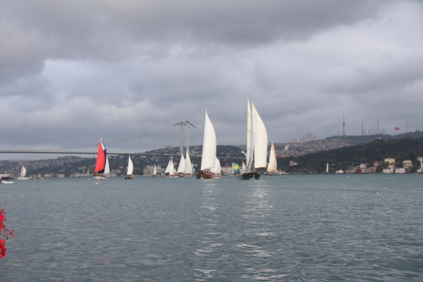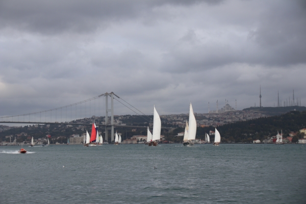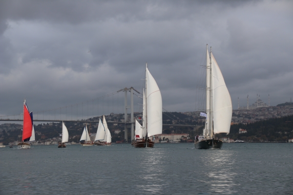 Yaklaşık bir saat süren kortejde Bodrum yapımı guletler, Avrupa ve Asya’nın buluştuğu sularda renkli görüntüler oluşturdu.
