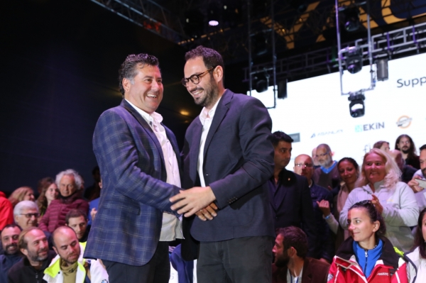 “Kupalarla dolu bir gece ama esas önemli olan 30 yıl. Bakın söylemesi çok kolay: 30 yıl! Onun için ben, bugün burada olan bütün yarışmacılara, özellikle de 30 yılın emeğini veren siz hanımefendilere, beyefendilere çok teşekkür etmek istiyorum. Biraz önce çok güzel bir atmosfer yaşadık; müthiş bir ekip, kolay değil. Üç haftadır yarışan arkadaşlarımız var. Bodrum limanından İstanbul’a yola çıkmış teknelerimiz var. Eleştirmek, yorum yapmak, konuşmak çok kolay ama ‘hadi gel, şunun ucundan tut!’ dediğin zaman, bir bakarsın ki hiç kimseyi göremezsin. Ama inananlar, bunun ucundan 30 yıldır tutuyorlar. Ve bugün arkamızdaki -özellikle biraz önce çıktığım zaman- genç kardeşlerimin buna sahip çıkması beni çok mutlu. Basamakları tek tek çıkarak bugünlere getiren başta Erman Aras olmak üzere Bodrum Cup’a sahip çıkan tüm genç kardeşlerime bir defa daha huzurlarınızda teşekkür ediyorum. Bugün Ağanlar Tersanesi’nde bu güzel geceyi kutluyorsak, inanarak mücadele etmeyi de asla unutmayacağız. Hayal kurmak güzeldir ama hayallerin peşinden gitmek ve onu gerçekleştirmek daha da güzeldir. Bugün bu hayallerimizi gerçekleştirebiliyorsak, size destek veren Bodrum yarımada halkına, Muğla Büyükşehir’imize ve özellikle –ki bunu her zaman gururla söylüyorum- balıkçı ve süngerci kayıklarından, mavi yolculuğun ilk gerçekleştiği zamanlardaki büyük ustalarımıza, kalfalarımıza, çıraklarımıza çok teşekkür ediyorum. Ve tabi ki denize inen bu güzel kuğularımızın kaptanlarına, gemicilerine, miçolarına, perdenin arka yüzündeki Süleyman Uysal kardeşim gibi gerçek kahramanların hepsine huzurlarınızda tekrar teşekkür ediyorum. Hepinize sevgi ve saygılarımı sunuyorum”